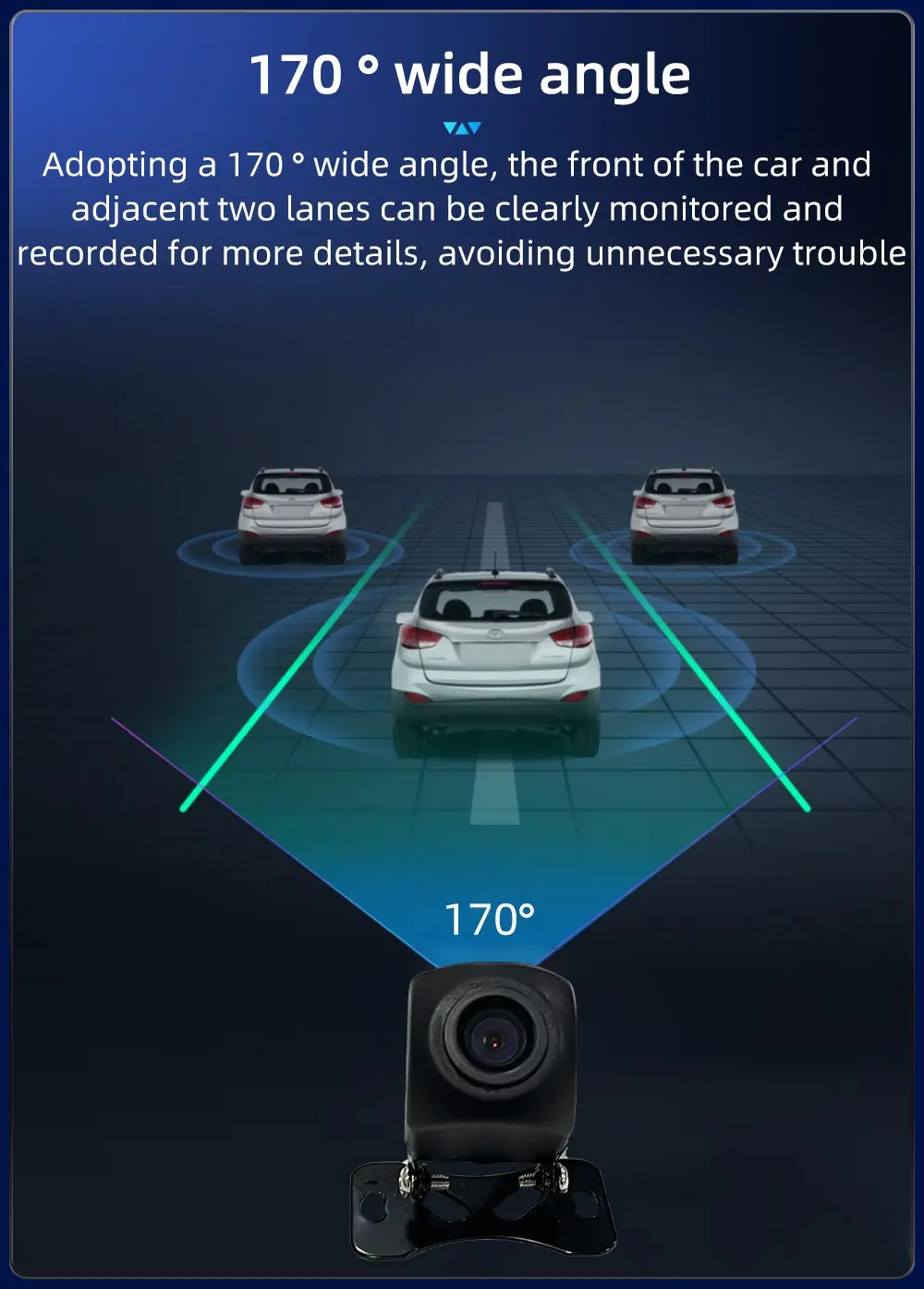 Featuring a 170-degree wide-angle lens, it clearly monitors and records more details of the area in front of the vehicle and two adjacent lanes, broadening your field of vision and helping you avoid unnecessary troubles!